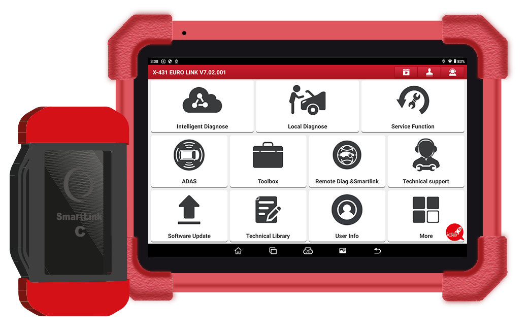 Det kommer med SmartLink C som en standard VCI, stöds av LAUNCH Super Remote Diagnosis System (SRDS), DoIP, PassThru och möjligheten att utöka enheten med HD Truck Software, som kan köpas separat.